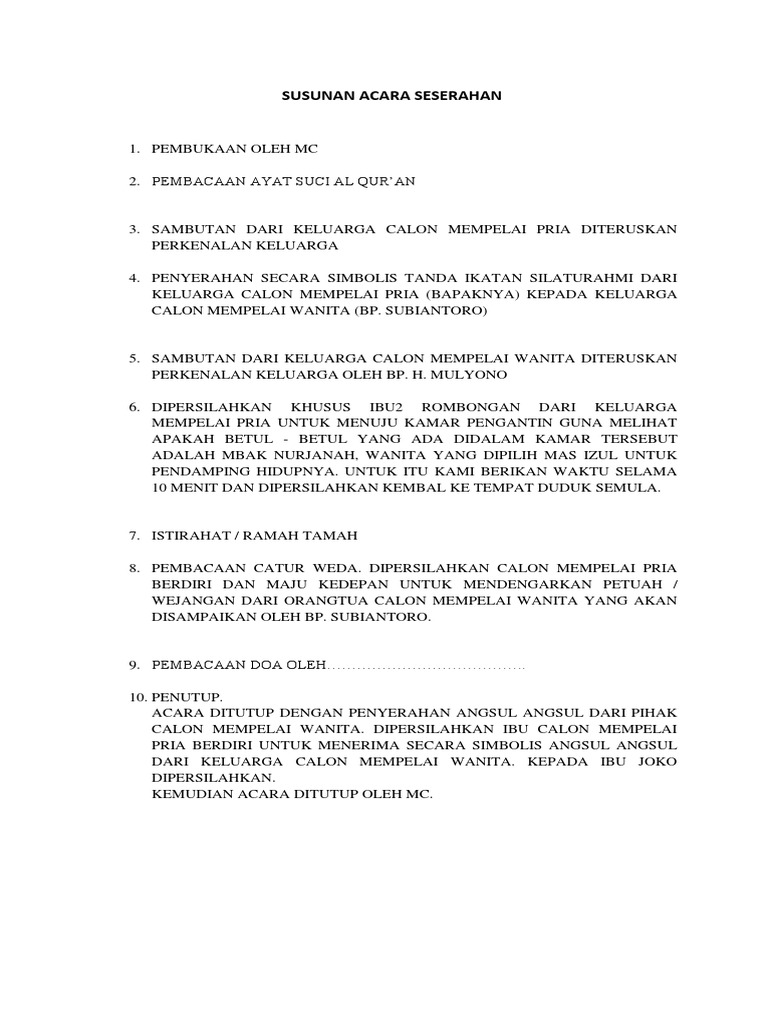 Contoh susunan acara untuk mc. Pembukaan Mukadimah MC Akad Nikah. Contoh Teks Pembawa Acara MC Dalam Bahasa Inggris Beserta Artinya. Berikut adalah contoh narasi MC untuk acara Formal.