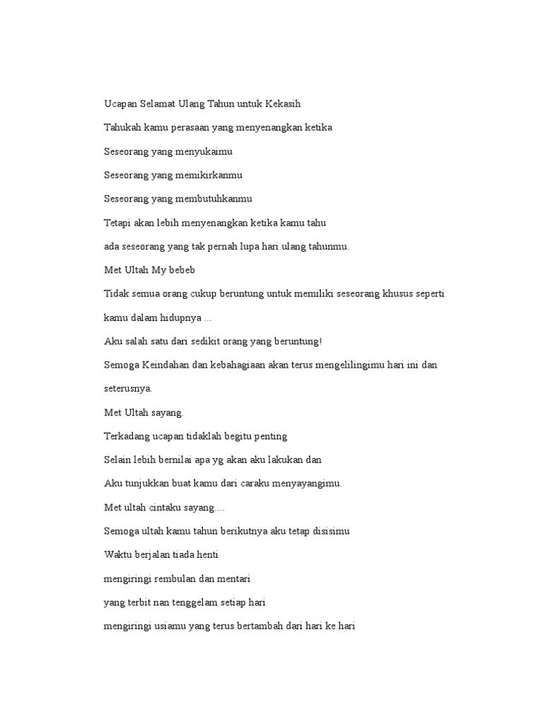 Bertambah satu usiamu Ohh semoga penuh warna Semakin indah hatimu berikan cinta tuk semua Kau telah tercipta sebagai insan istimewa Tumbuh dalam jiwa terus bahagia dan raih cita Syukur tuk yang kuasa atas beragam anugrah Kusertakan doa Panjang umur kasih berlimpah Ikuti hidup yang mengalir dan reguklah hingga akhir Karna dunia terus berubah jangan kau terlena dan goyah Kau bertambah. Ku nyanyikan sebuah lagu Agar istimewa harimu Happy birthday to you happy birthday Happy birthday to you happy birthday Happy birthday to. Smoga Tuhan melindungi kamu Serta tercapai semua angan dan cita citamu Mudah mudahan diberi umur panjang Sehat selama.
