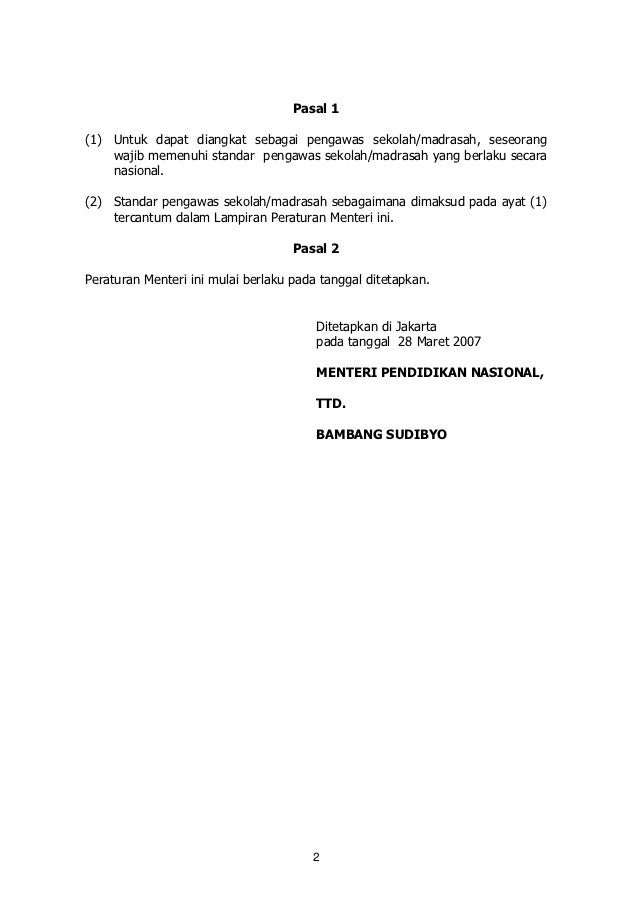 Permendiknas-No-12-Tahun-2007 standar pengawas sekolah madrasahpdf. Bahwa dalam rangka pelaksanaan Pasal 39 ayat 3 Peraturan Pemerintah Nomor 19 Tahun 2005 tentang Standar Nasional Pendidikan perlu menetapkan Peraturan Menteri Pendidikan. PERATURAN MENTERI PENDIDIKAN DAN KEBUDAYAAN.