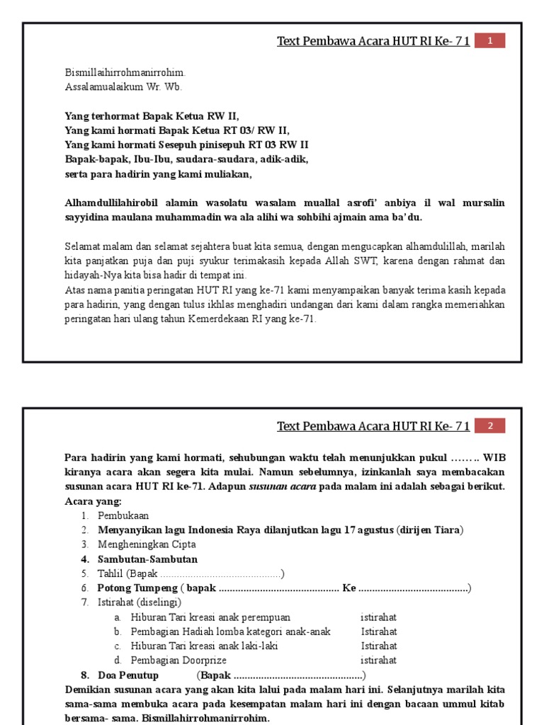 Naskah mc ulang tahun. Contoh Naskah MC 17 Agustus untuk Acara Kemerdekaan RIFoto. Pada hari yang bahagia ini pertama-tama marilah kita semua bersyukur ke hadirat Tuhan YME atas berkah dan rakhmat-Nya kepada kita semua. Kumpulan Contoh Teks Mc Acara Ulang Tahun Anak Usia 1 Tahun Terbaik.