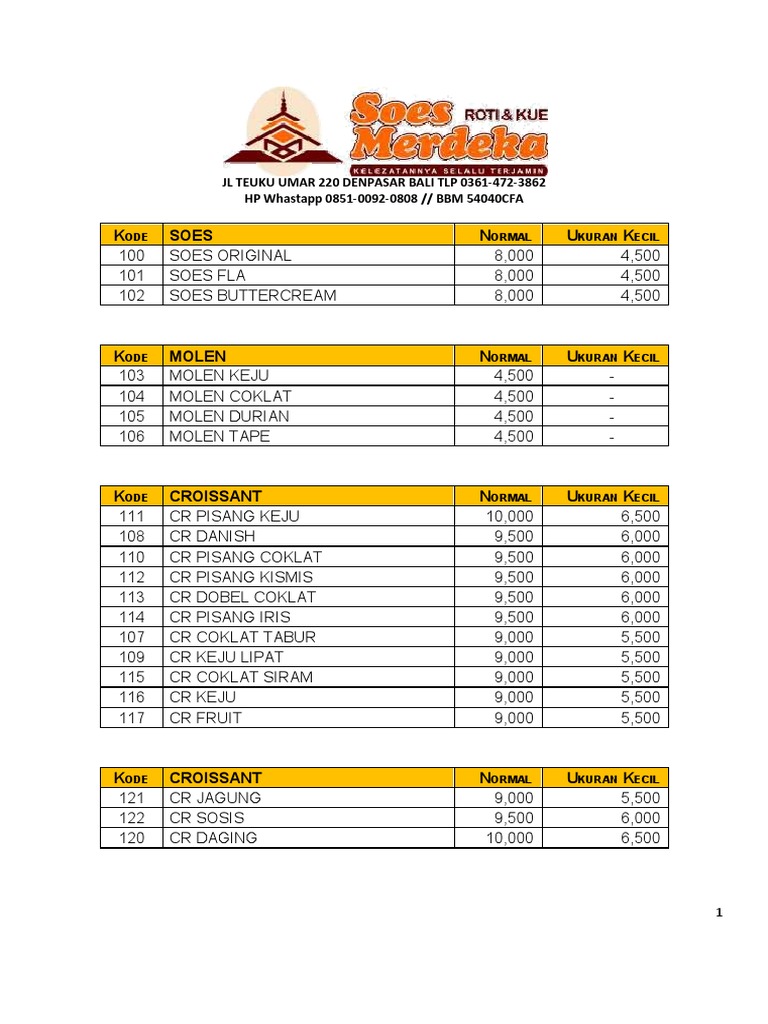 Pricelist Desember 2017 Soes Merdeka Bali Bakery Proposal Catering Snack Box