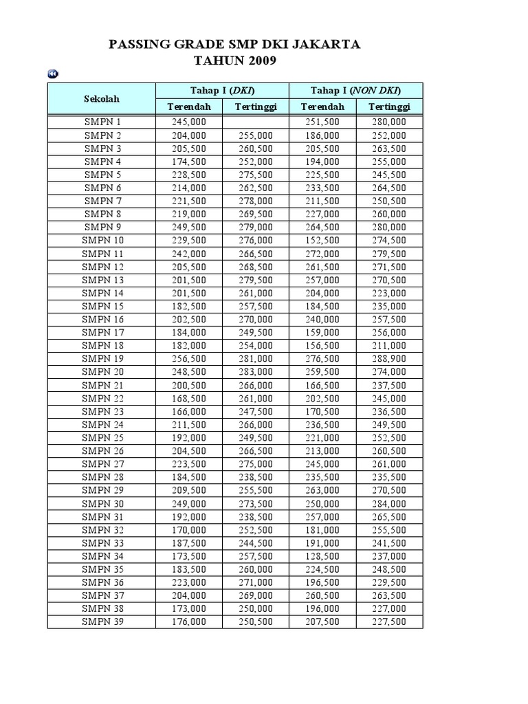 Passing grade smpn jakarta. SMPN 85 Terendah 2445 Tertinggi 2735. Berikut Daftar Passing Grade SMPN Tahun Pelajaran 20122013. Your browser does not support the audio element.