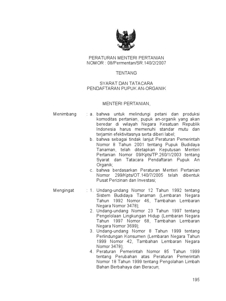 Permentan 08 140 Ttg Syarat Dan Tatacara Ran Pupuk An Organik