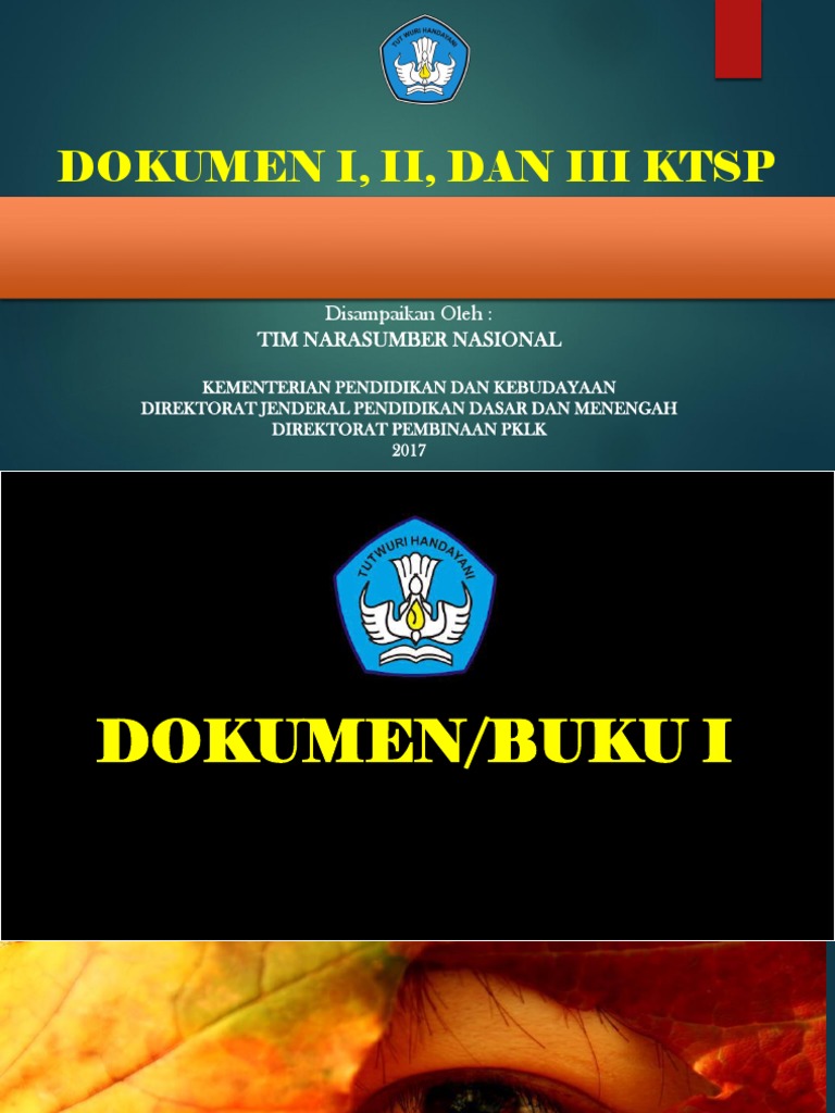 Halaman Awal Sampul Dokumen I Lembar Pengesahan Kata Pengantar Daftar Isi b. Baik KTSP maupun Kurikulum 2013 tiap sekolah wajib memiliki Dokumen 1 sebagai Kurikulum yang akan dijalankannya. Ini sesuai dengan Permendikbut nomor 81A Tahun 2014 dijelaskan bahwa pemerintah tidak menghapus kurikulum tingkat satuan pendidikan KTSP yang artinya sekalipun sekolah menggunakan kurikulum 2013 sebagai kurikulum terbaru pengganti KTSP tetap didalam dokumen 1 ini setiap sekolah wajib menyusun KTSP.
