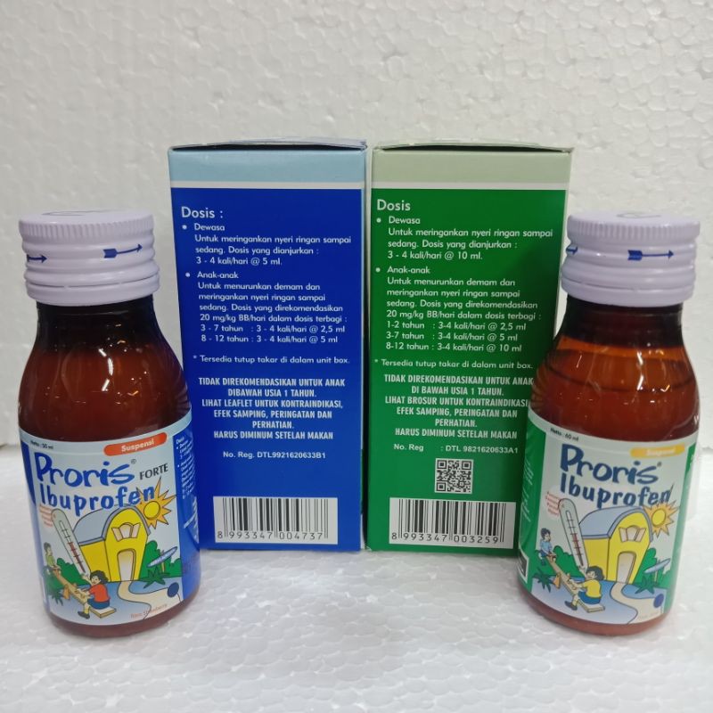 Proris Syrup adalah obat yang digunakan untuk meredakan demam sakit kepala sakit gigi sakit pada telinga hingga nyeri haid. Proris Suspensi mengandung Ibuprofen 100 mg sendok teh 5ml rasa. Cara Pakai Dosis.