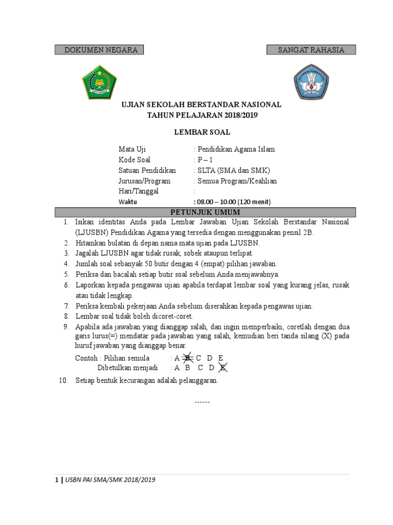 Berikut ini akan kami berikan sebuah file yang berisikan Kisi-Kisi USBN PAI SMP Tahun 2020 kepada anda semuanya sebagi persiapan. SOAL US PAI 2020 K13pdf. Soal Usbn Pai Smp Tahun Pelajaran 2012 2013.