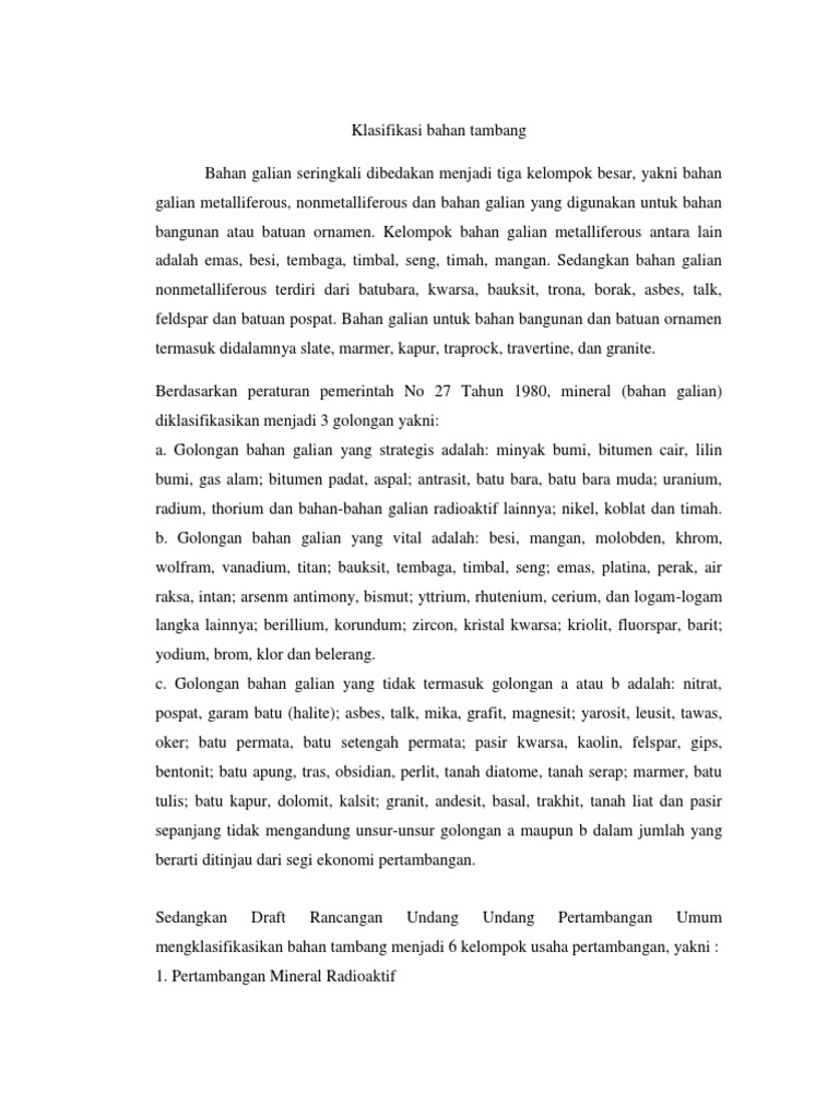 Klasifikasi Barang Tambang Menurut Uu No 11 Tahun 1967 Tentang Tahun