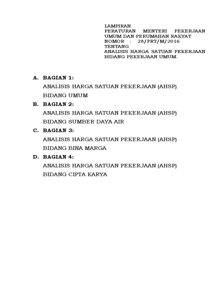 Lamp Permen PUPR 28 2016 AHSP Bidang Umum SDA Cipta Karya dan Bina Marga. Cara Print E Spt Pph 21. Peraturan Menteri Pekerjaan Umum dan Perumahan Rakyat TENTANG Penyelenggaraan Sistem Penyediaan Air Minum.