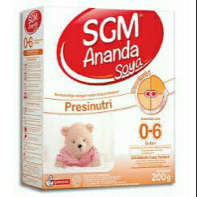 Susu SGM Ananda Soya 0-6 bulan 200grRp35000. Update Terakhir 06 Okt 2020. Susu SGM dengan tipe Ananda pada kemasan 200 gram saat ini telah banyak dijual di pasaran.