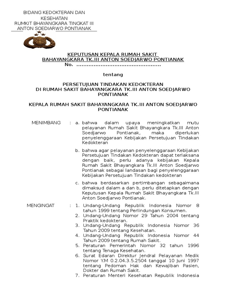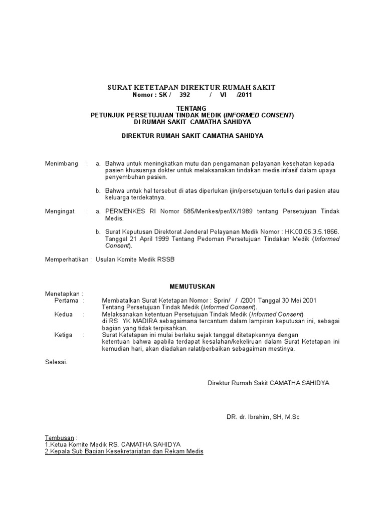 Sprin 2001 Tanggal 30 Mei 2001. SK DIR RSMMX2015 Tentang INFORMED CONSENT MENIMBANG. Patients simply do not advance to the operating room for example without a signed consent form.